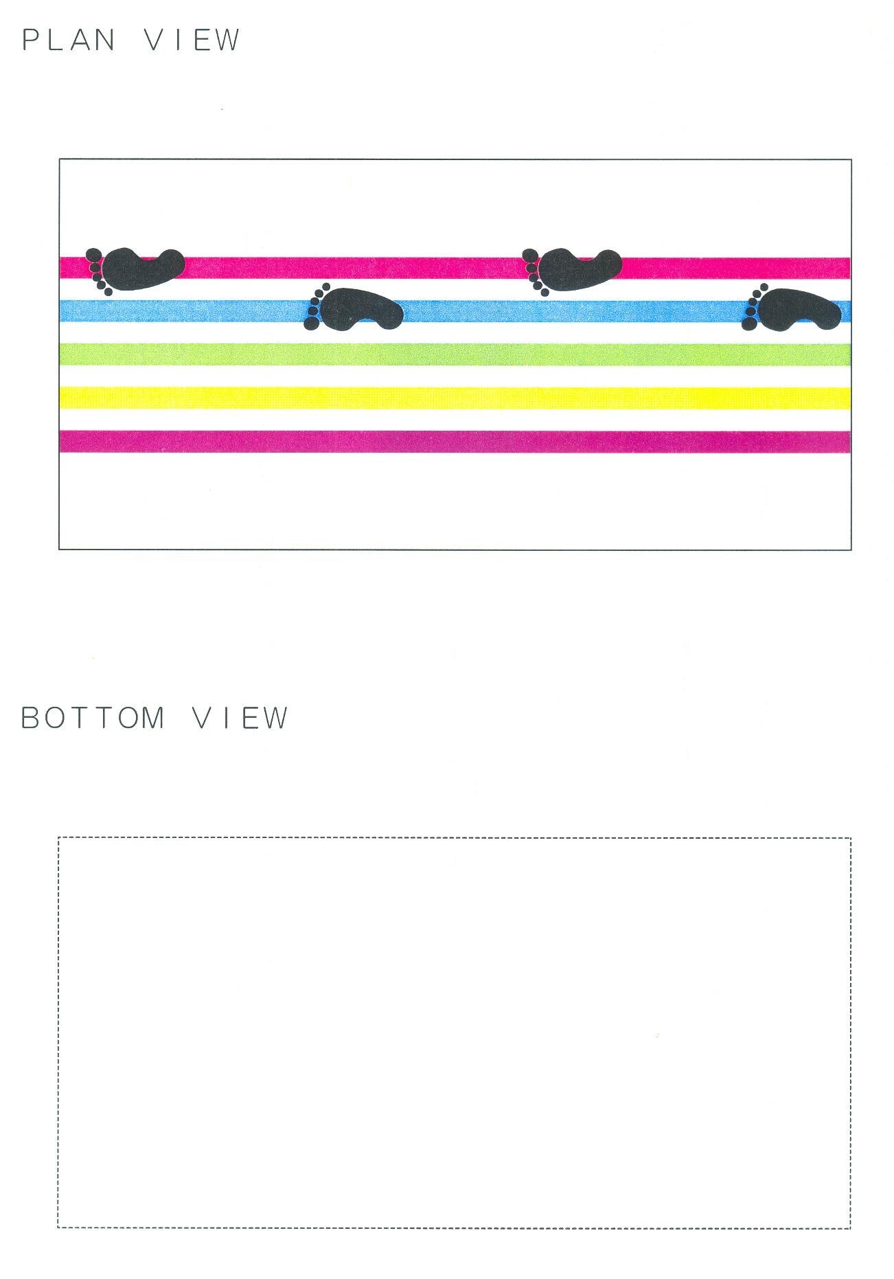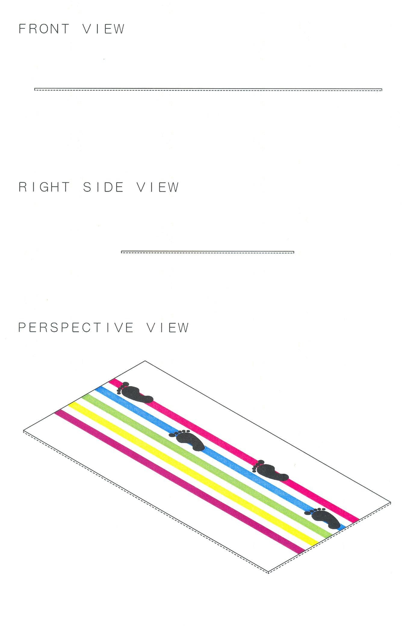 This product is put on an indoor floor & the ground for use for example. The solid lines in the figures are the part for which protection is required. This design repeats in longitudinal direction on plan view. Back view is omitted because it is symmetrical to front view. Left side view is omitted because it is symmetrical to right side view.