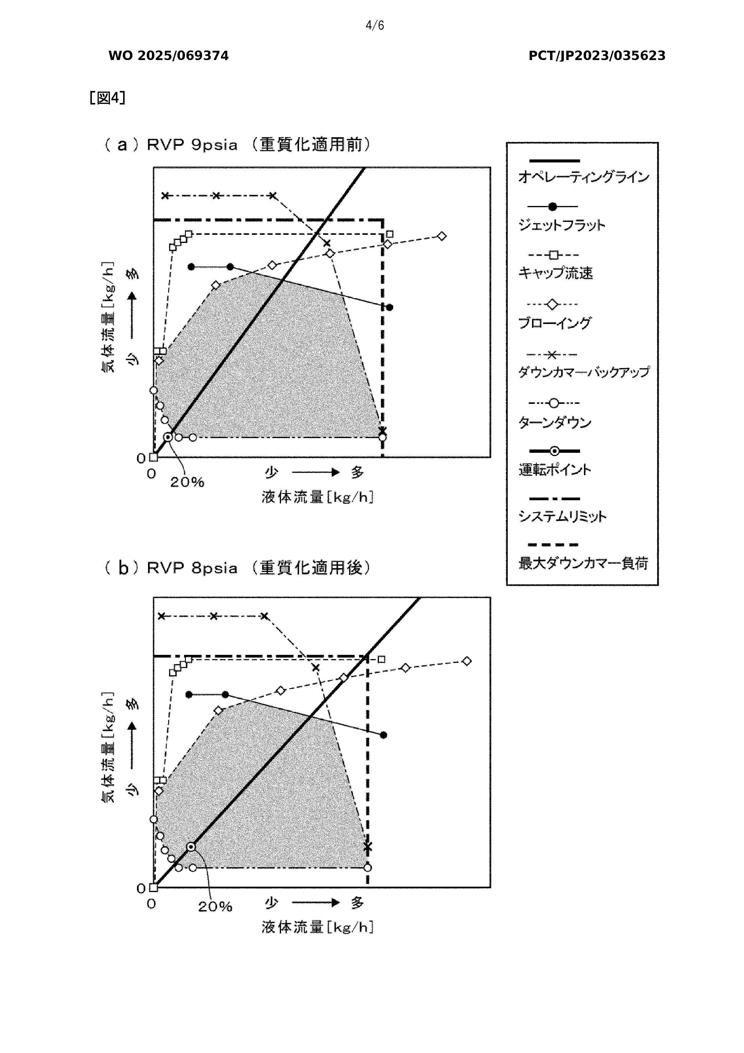 An operating method of a distillation column includes: adjusting a fluid being treated, which is supplied to the distillation column, to a turndown-operation-time supply flow rate that is lower than a design-operation supply flow rate; increasing a turndown flux flow rate and a turndown reboiler flow rate, and raising a column-internal air-liquid load, in order to make the properties of a column-bottom product flowing out from the column bottom heavier than those in the design operation while satisfying specifications required in design, or making the properties of a column-top product flowing out from the column top heavier than those in the design operation while satisfying specifications required in design, for the distillation column to which the fluid being treated is supplied at the turndown-operation-time supply flow rate; and verifying that the properties of the column-top product or the column-bottom product satisfy required specifications.